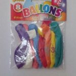 Zakje met 8 ballonnen. 30cm doorsnee (12 inch). Biologisch afbreekbaar.